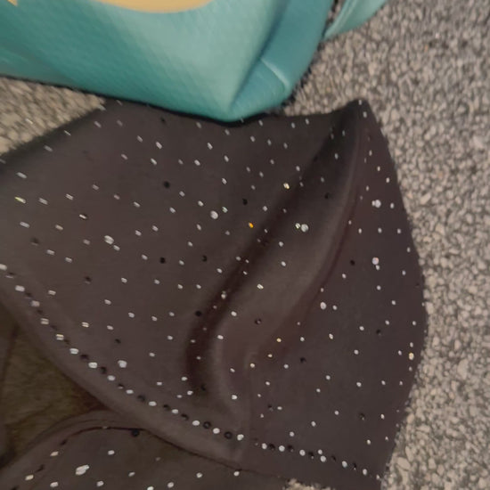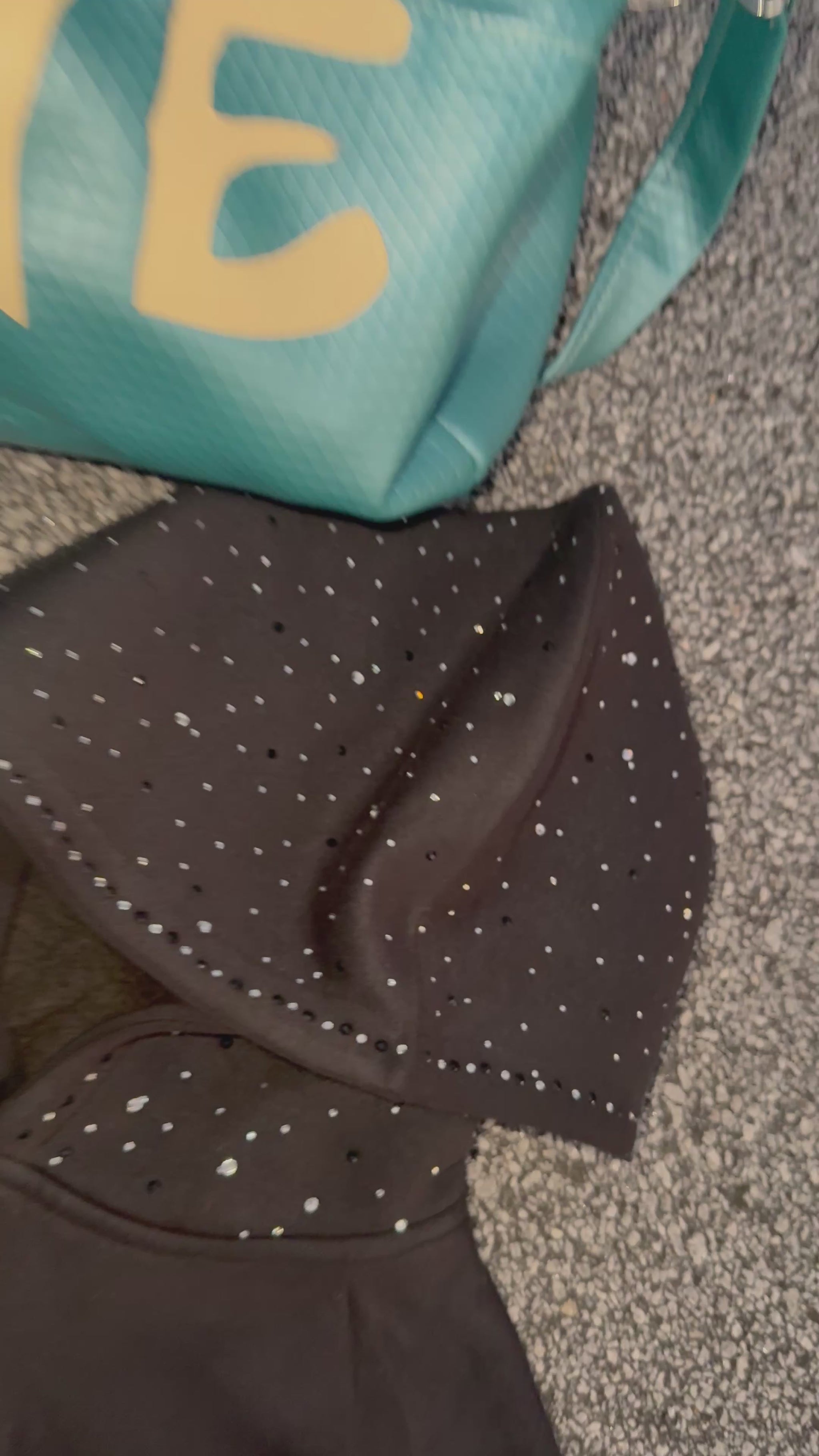 Black hoodie with rhinestone hood female cross face design adds blue assist